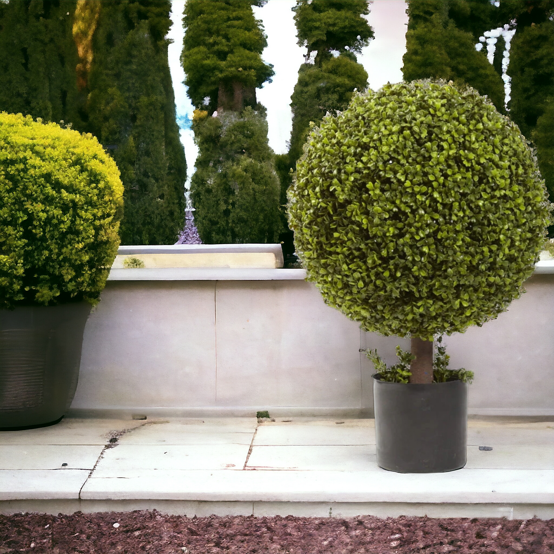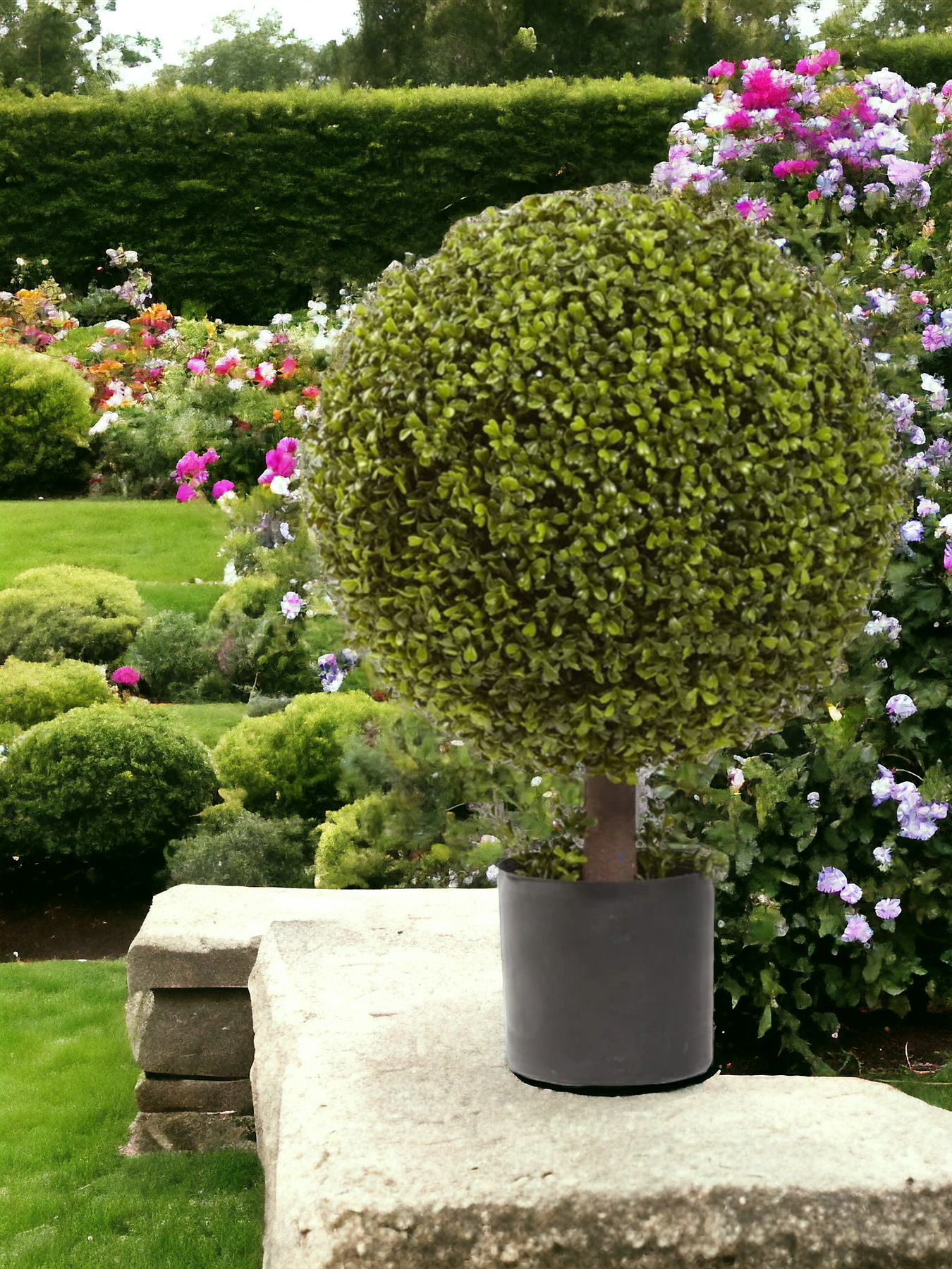 Boxwood is one of the more versatile hedge plants out there. That's because it can be shaped into just about anything and still look great. And we've lovingly reproduced the classic Boxwood look, complete with soft, green leaves, and shaped it into a timeless Ball Topiary. Complete with a pot (included in height), this Boxwood will never outgrow its shape, and will never need water. Bring a posh look and feel to your space by decorating with a polished boxwood that is incredibly lifelike. Inspired by nature and assembled in the USA from high-quality materials, this horticulturist designed and approved small boxwood topiary tree is perfect for any compact area that needs a little color. If you’re looking to spruce up an office desk, bedside table or bathroom, look no further. For a cohesive look, we recommend decorating with multiples.