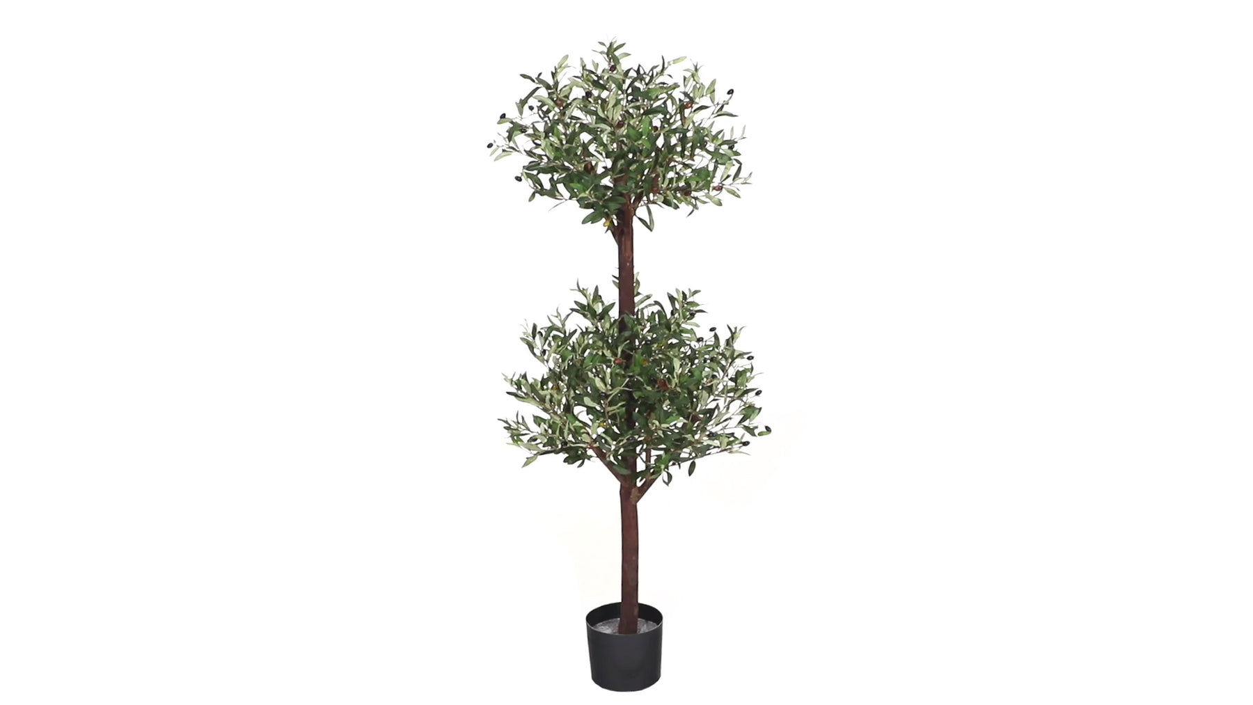 Delicate, yet sturdy; whimsical yet stately; this Olive Topiary fits snugly into any décor, and announces nature’s majesty, all year round. The 1794 leaves are divided into two faux growth points from the stately trunk, and splay about in all directions, giving a casual appearance that perfectly contrasts the neatness of the two groups. Makes an ideal doorway accent or conversation piece.
