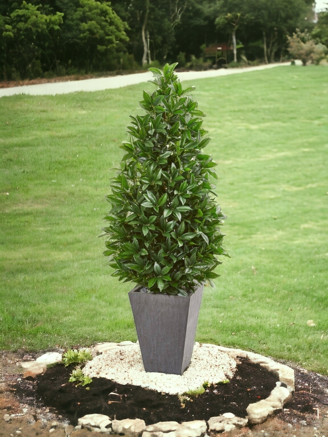 57” Bay Leaf Cone Topiary Tree in Slate Planter (Indoor/Outdoor)