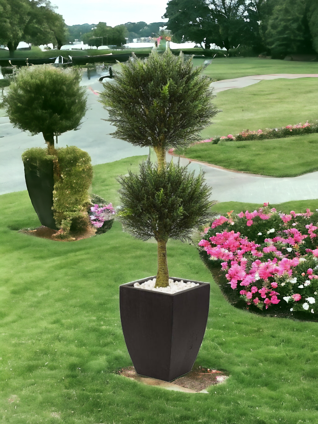 Cypress Topiary with Black Planter UV Resistant (Indoor/Outdoor)